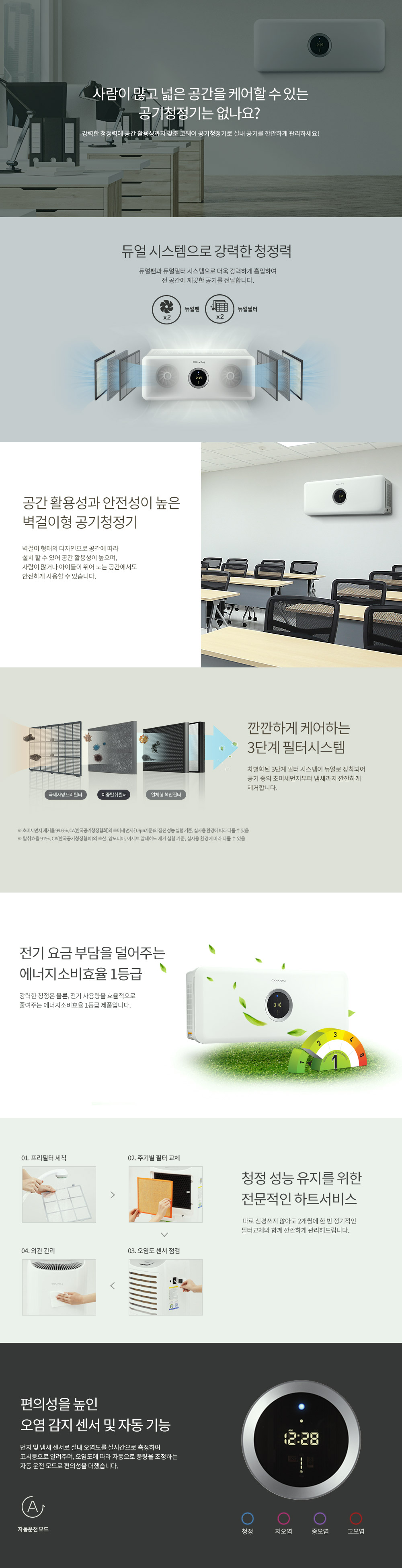 16.6평 / 넓은 공간 강력하게 청정! 업소, 학원 / 벽걸이형 / 3단계필터 / 듀얼시스템 / 에너지소비효율1등급(청정 27 W)