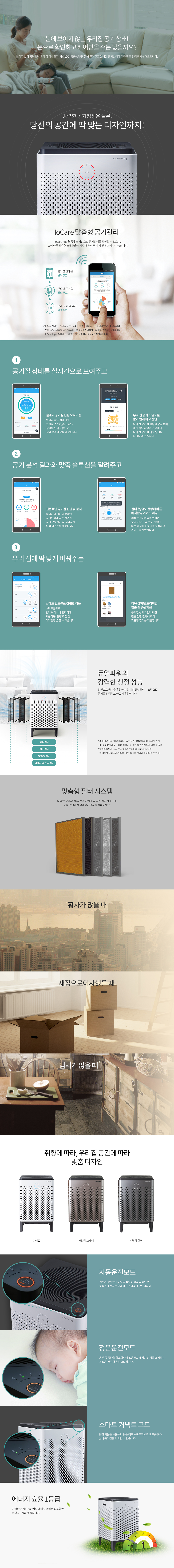 15평형 공기청정기 / IoCare / 듀얼파워 / 프리미엄 인테리어 컬러 / 자동 운전모드 / 에너지 효율 1등급