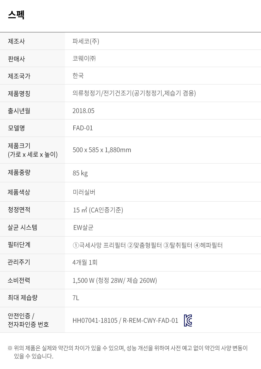 [코웨이] FAD-01