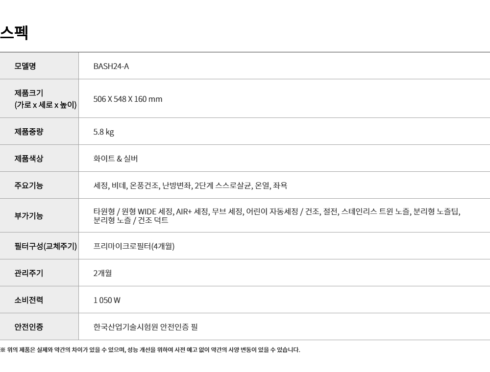 5.8 kg / 화이트 & 실버 / 506 X 548 X 160 mm
