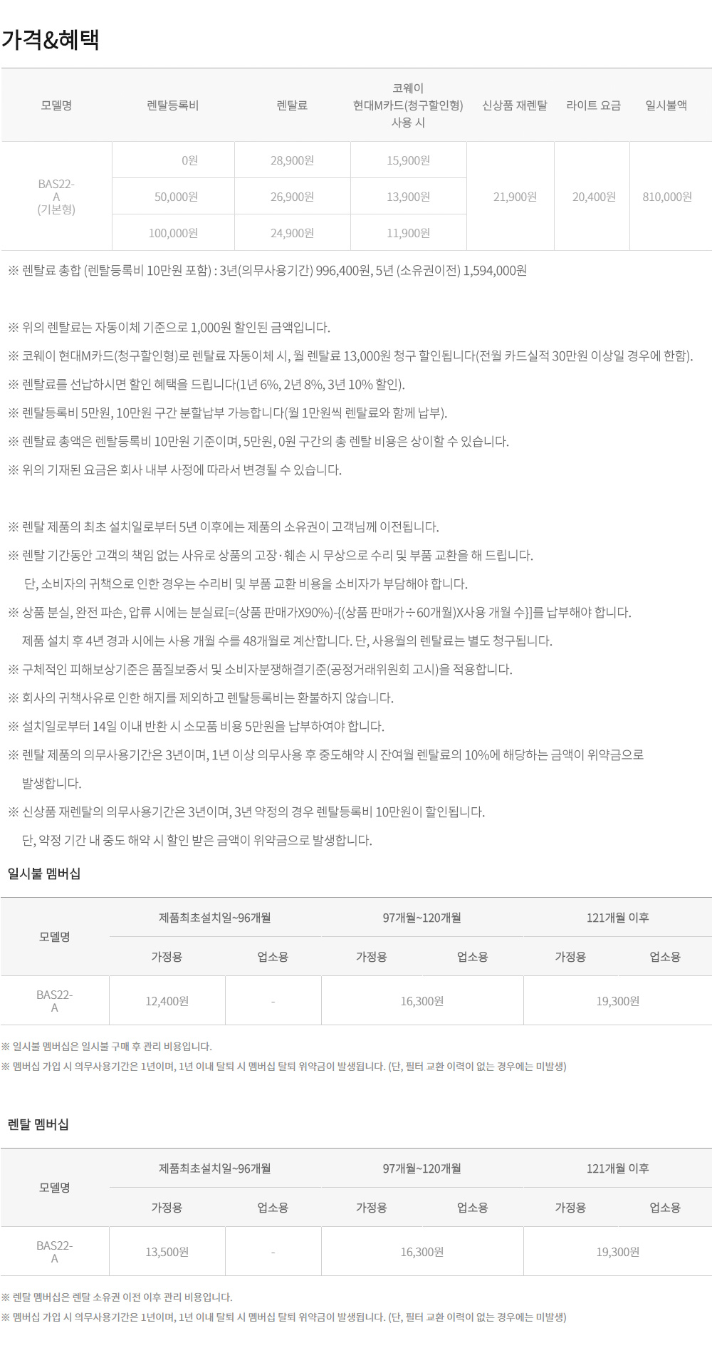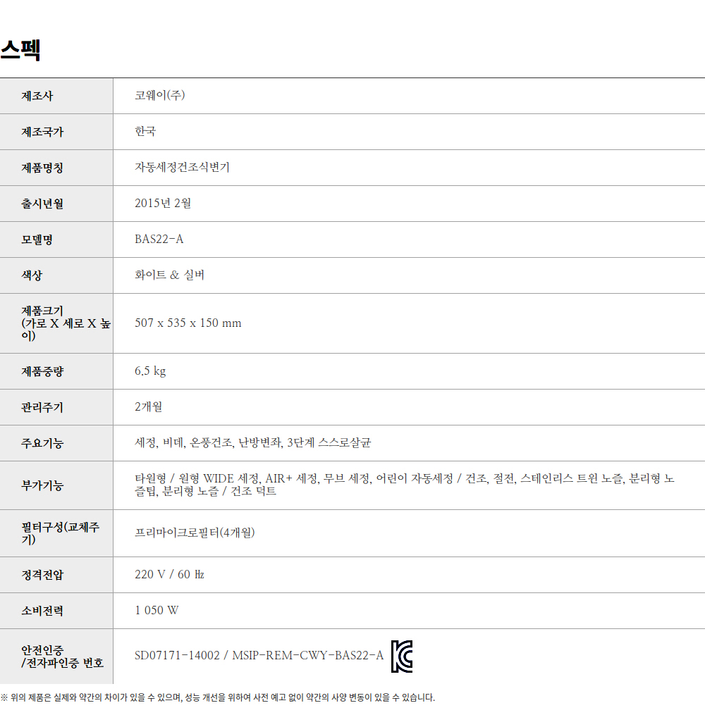 [코웨이] BAS22-A