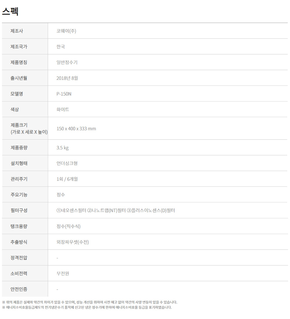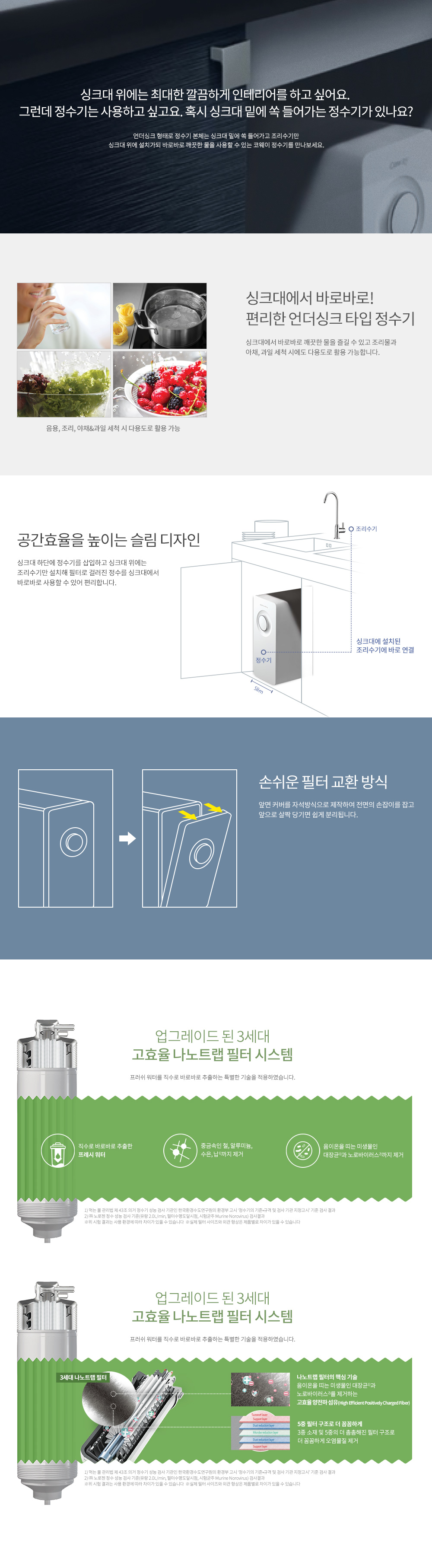 언더싱크형, 정수(직수식), 외장파우셋(수전)