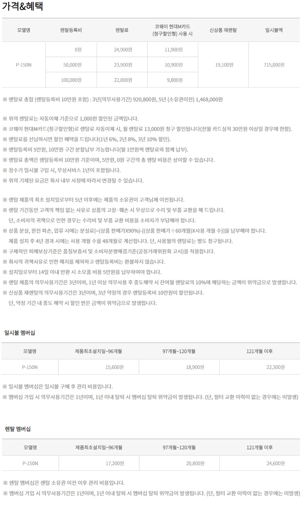 코웨이 KB국민카드 (-20,000원) 코웨이 Slim 할부 우리카드 (-20,000 원) 코웨이 현대M카드(청구할인형) (-17,000 원) 코웨이 플러스 하나카드 (-13,000 원)