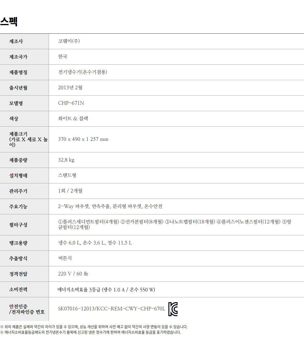 [코웨이] CHP-671N