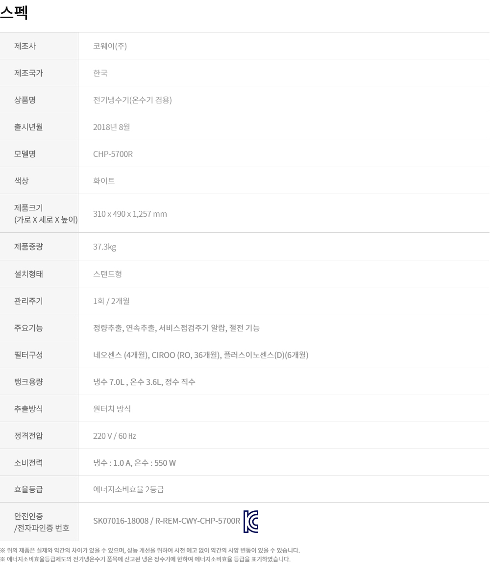 전기냉수기(온수기 겸용) /스탠드형/정량추출, 연속추출, 서비스점검주기 알람, 절전 기능