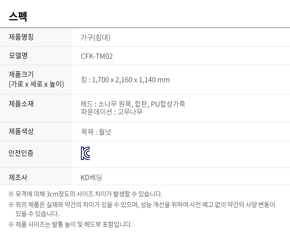헤드 : 소나무, 합판, PU합성가죽/파운데이션 : 소나무