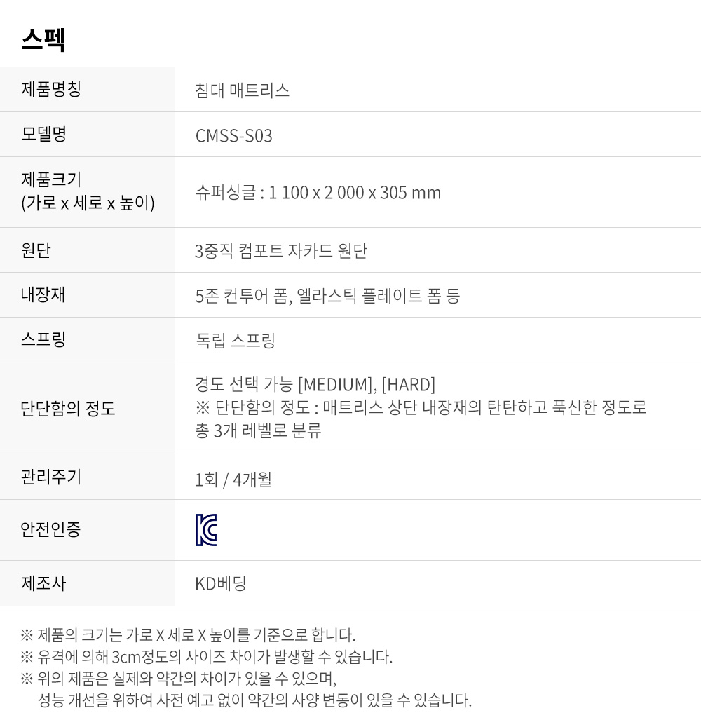 CMSS-S03 탑퍼교체 매트리스 프라임(슈퍼싱글)