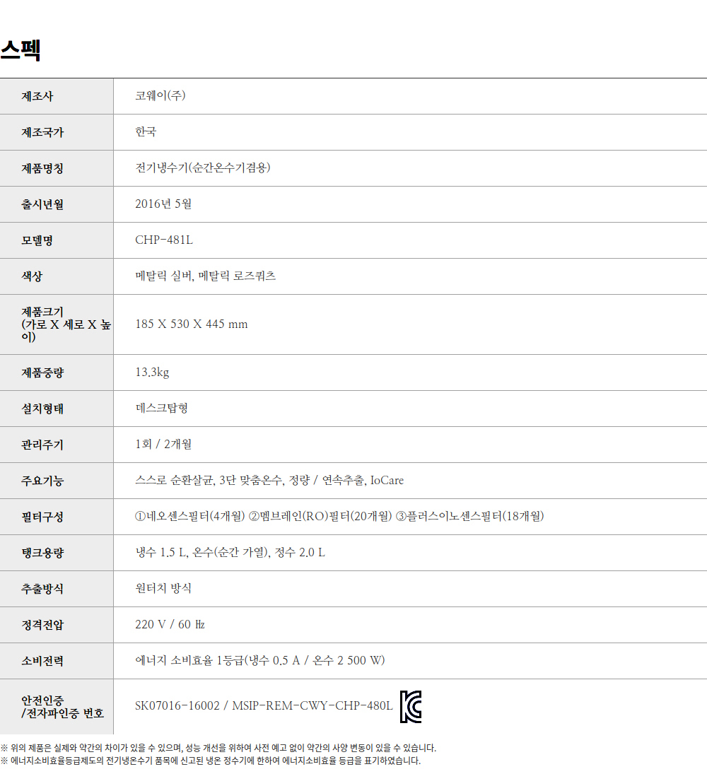 [코웨이] CHP-481L(실버)