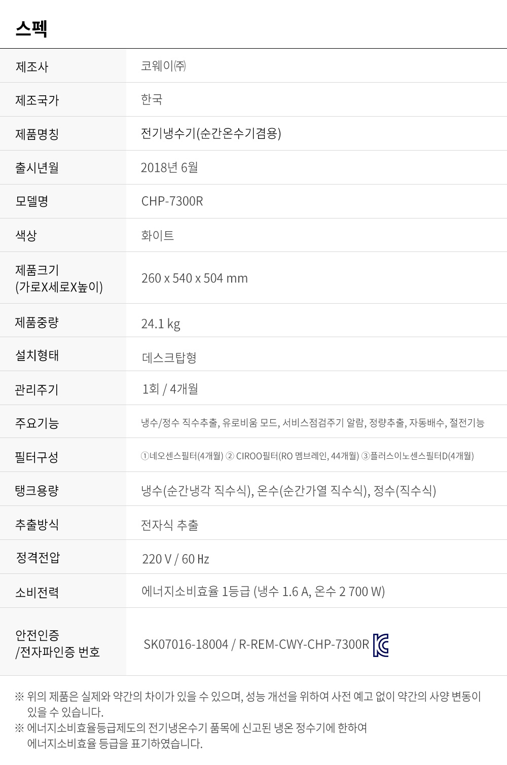 냉수/온수/정수 직수추출, 유로비움 모드, 서비스점검주기 알람, 정량추출, 자동배수, 절전기능